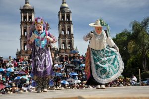 Mascaras de animales: Usaban mascaras de animales como: venado, coyote, leopardo y otros tipos de animales, y así mismo tratan de imitar los sonidos/aullidos de los animales a los que se disfrazaban por lo que se le conoce al grito característico de los llamados “curpites”. Con el paso del tiempo el uso de las mascaras fueron reemplazadas por el de personas, que llevaban sobre las mascaras un lucido y costoso sombrero que era bordado con grecas de hilo de oro y plata, una capa adornada de chaquiras, cuentas, espejuelos, listones y flores de papel, en los pies se ponían cascabales para que hiciera sonidos cuando se movían. El sombrero también cayo, poniéndose en su lugar una cabellera compuesta de cuerdas de animales.